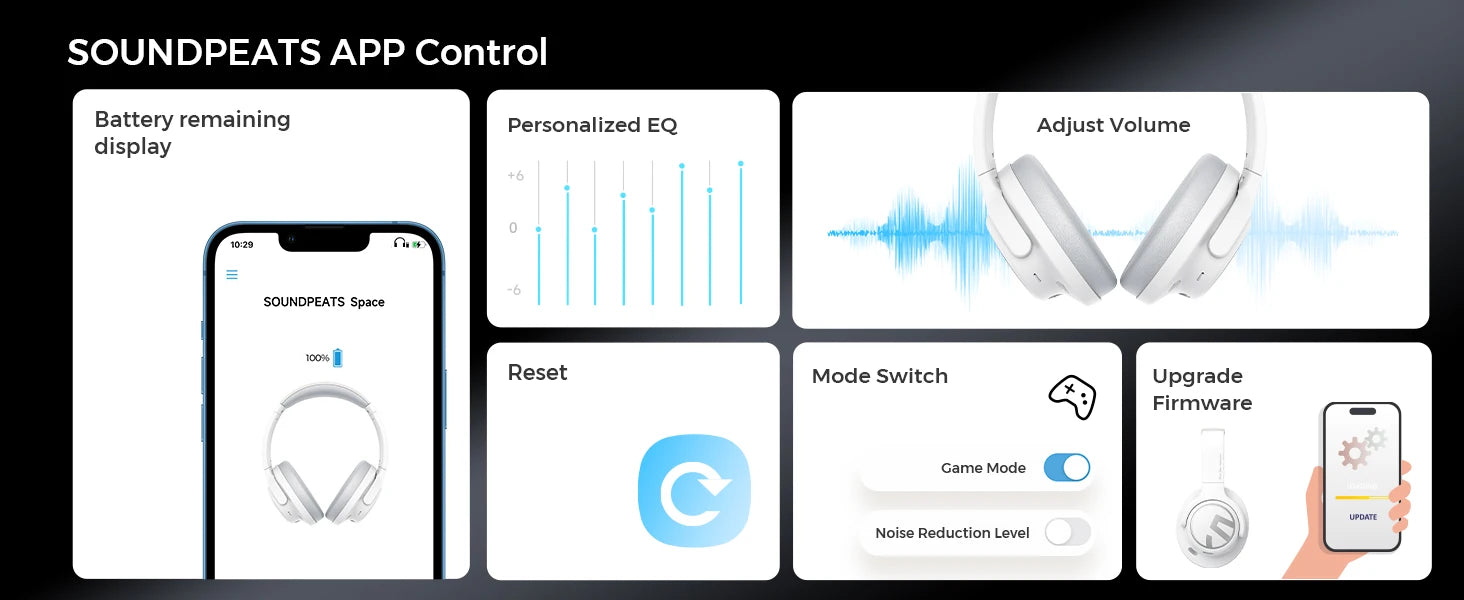 【Hybrid ANC Tech】 SoundPEATS Space features hybrid active noise cancellation that reduces noise by up to 35 db, allowing you to enter your private world even in noise or connect to the surroundings.